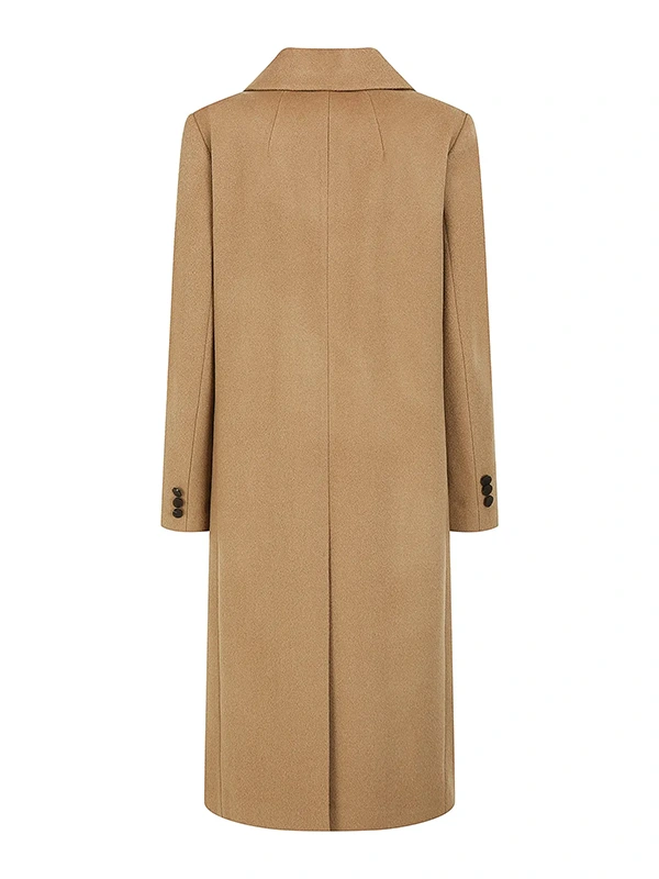 羊绒混纺面料触感柔软舒适,长款设计更显时尚格调。
