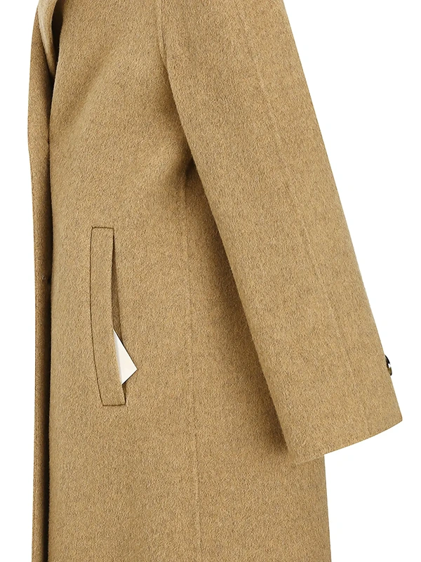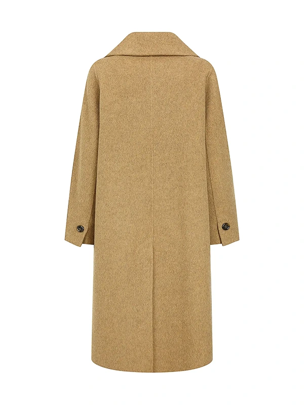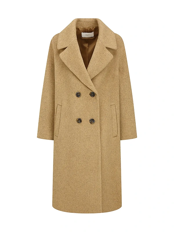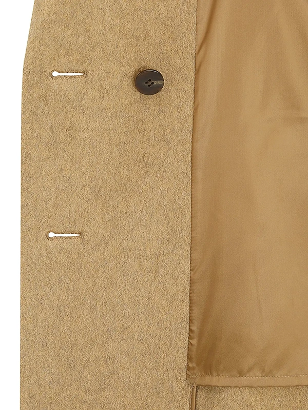 这款手工羊毛混纺大衣,采用结实耐用的双排扣设计。