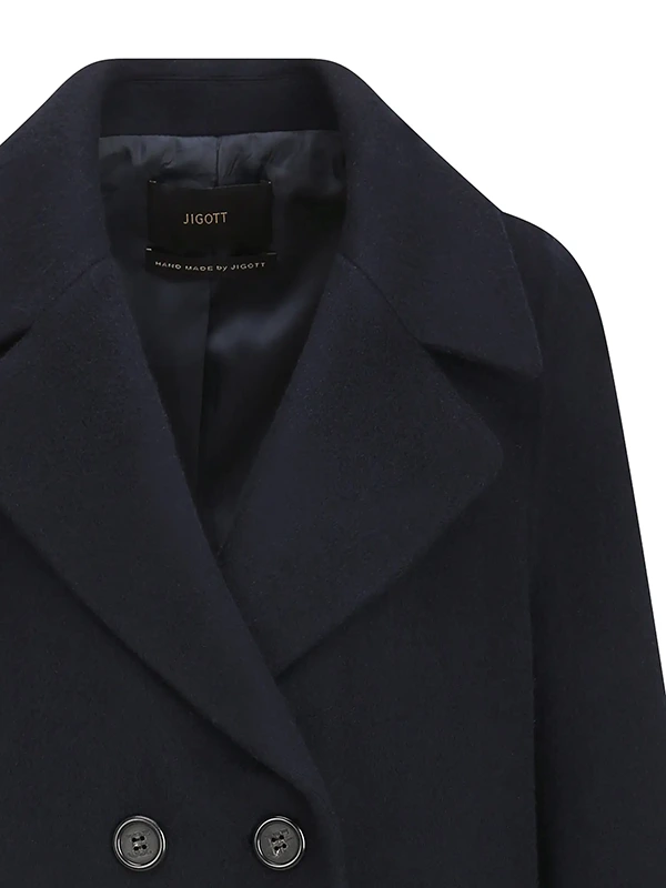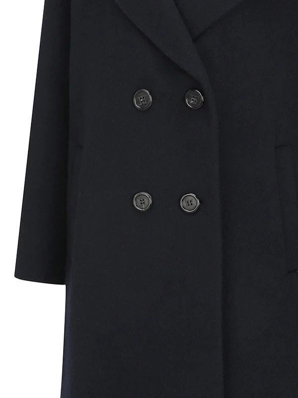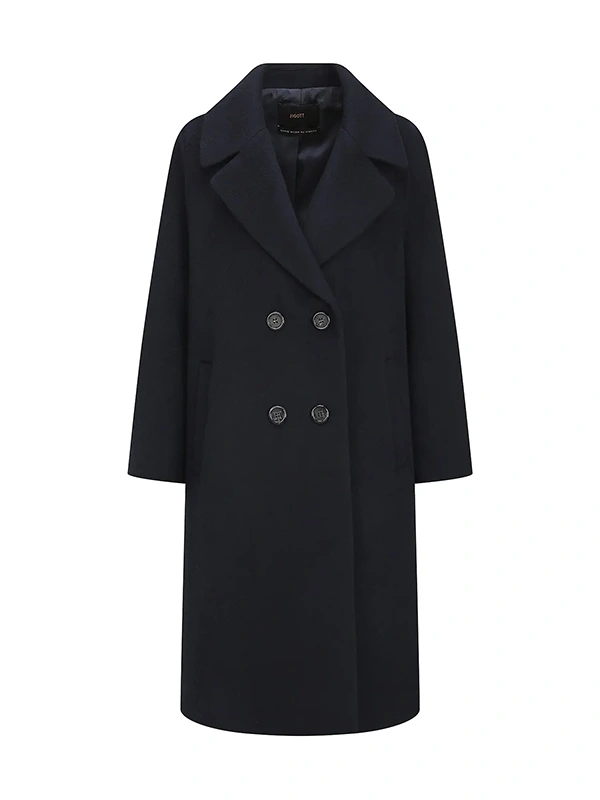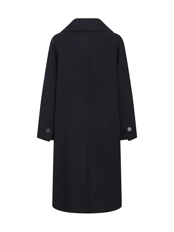宽松羊毛双排扣手工大衣(深海军蓝)