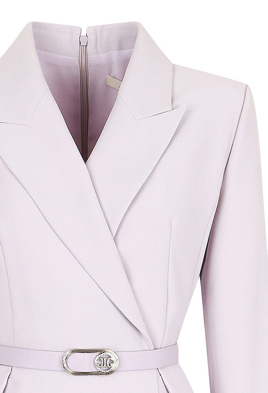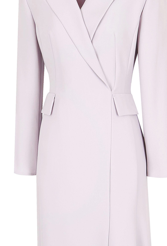 • 广州服装制造工厂直供白色西装领收腰连衣裙,选用挺括面料塑造立体版型,西装领设计干练大气,腰带收腰凸显身材曲线,不对称裙摆注入时尚细节。
